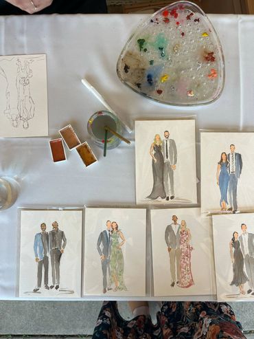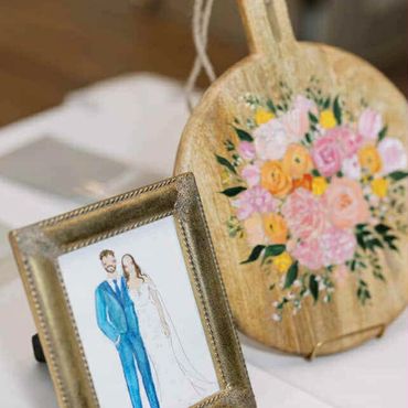 This package includes 4 hours of live painting time, a complimentary addition of turning your portrait into a thank you card template that you can use to print off, and any additional time it takes to complete your guest portraits! Your paintings will be given back to you in 1-2 weeks time. This also includes adding names/dates to your portraits!