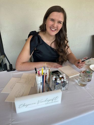 I’m Cheyenne, a live wedding painter creating heirloom-quality artwork that tells the story of your day through soft, romantic brushwork and timeless detail. My paintings focus on the connection between you and your partner—the emotion, the light, the way your dress flowed or your hands held each other tight. I capture not just what your day looked like, but how it felt.